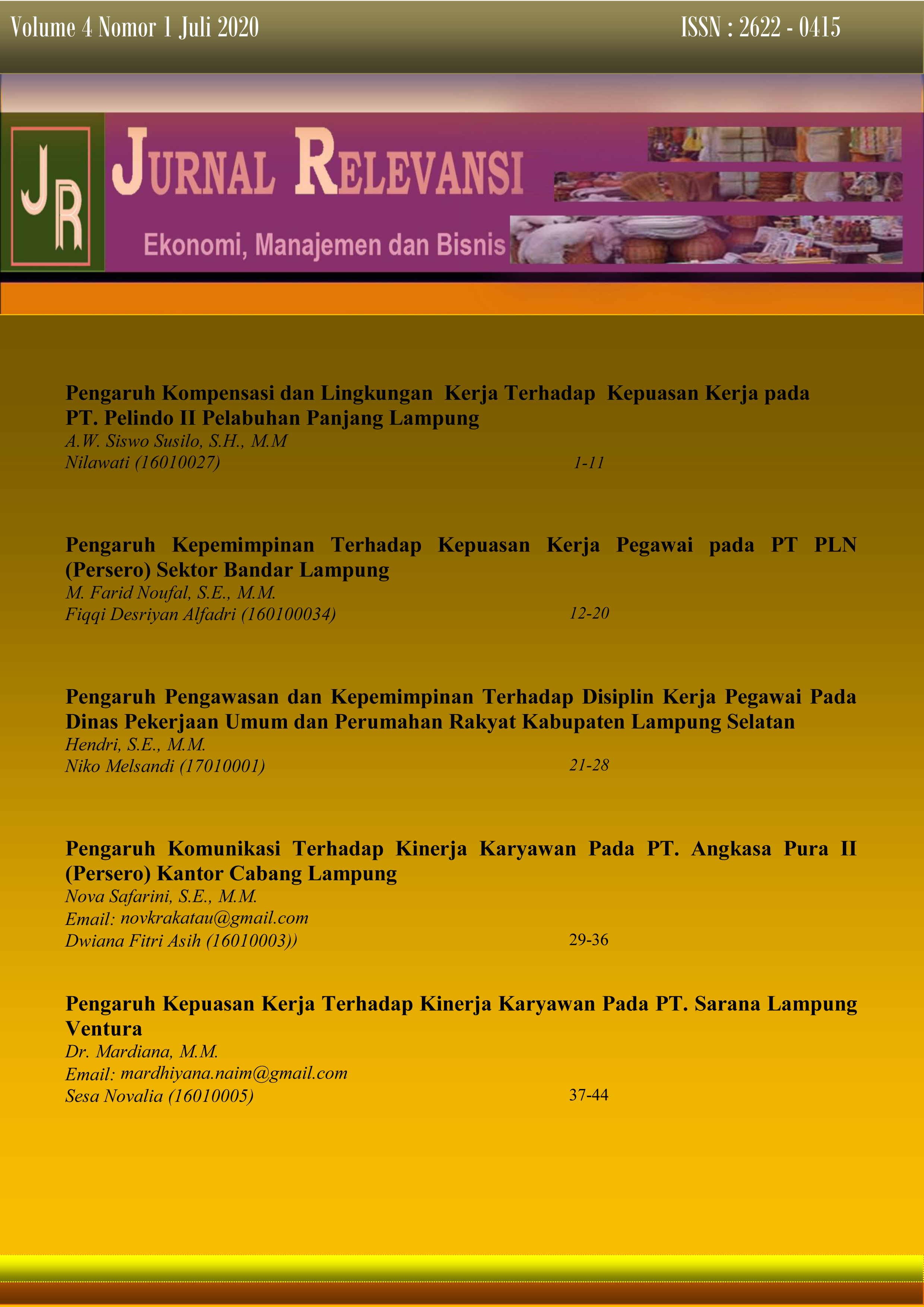 Vol 4 No 2 (2020)Nama terbitan : Jurnal Relevansi : Ekonomi, Manajemen dan Bisnis